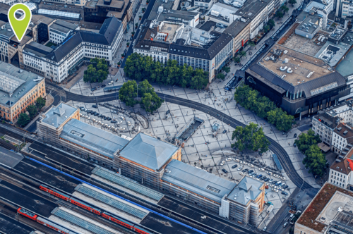 Aktueller Standort der TAIFUN Software GmbH am Hannover Hauptbahnhof, aufgenommen 2013 aus einem Heißluftballon.