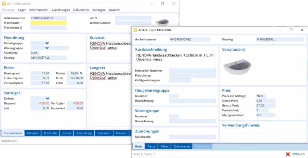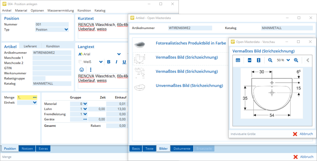 Doch nicht nur das – Sie erhalten vollumfängliche Materialtexte sowie verfügbare Artikelbilder, Dokumente und CAD-Zeichnungen zu den jeweiligen Artikeln frei Haus – kein lästiges Suchen mehr!