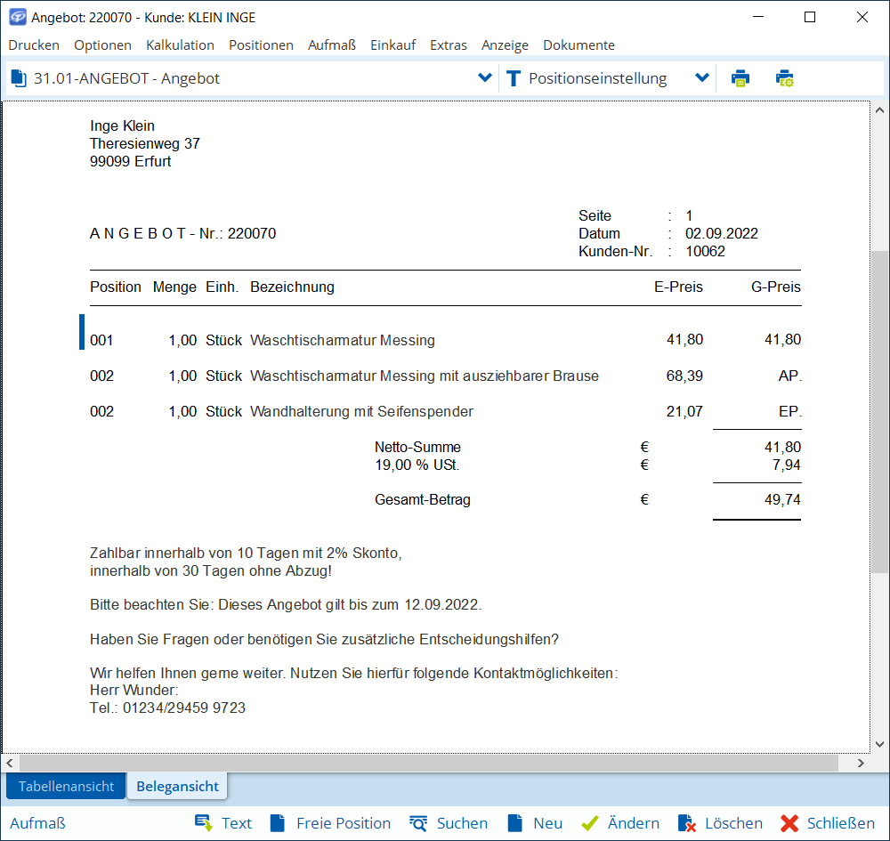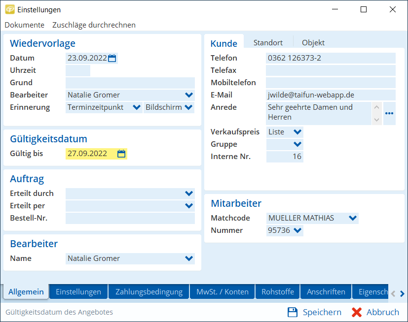 Gültigkeitsdauer im Angebot hinterlegen