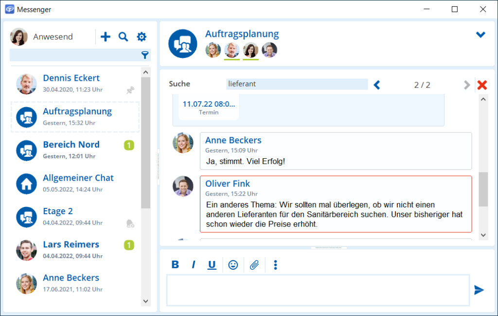 Volltextsuche im Messenger
