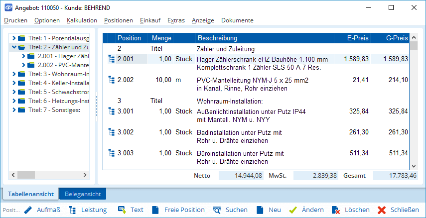 Angebotserstellung? Kein Problem! Denn Ihr Datenkatalog beinhaltet Artikel- und Leistungspositionen, Preise, Rabattgruppen, Lohnzeiten, Kupferwerte u.v.m.