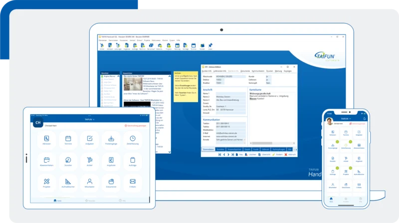 - Mobiler Zugriff auf Ihre Daten via TAIFUN App – über Tablet und Smartphone.